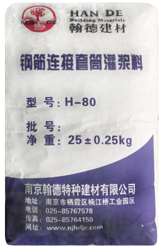 南京翰德特種建材有限公司是一家集開發(fā)、生產(chǎn)、銷售、管理于一體的現(xiàn)代化企業(yè)。我公司專業(yè)生產(chǎn)高強無收縮灌漿料,現(xiàn)擁有客運專線專用型、H-40、H-60、CGM、特種灌漿料等五大系列。 我公司成立以來,通過技術(shù)創(chuàng)新、完善企業(yè)經(jīng)營管理,客戶已遍及江蘇、山東、河南、浙江、福建等省市,目前公司產(chǎn)品年生產(chǎn)能力30000。已有多項規(guī)格品種產(chǎn)品分別獲國家專利、省市名牌,并被列為國家星火計劃、國家火炬計劃,產(chǎn)品產(chǎn)銷量居全國同行業(yè)前列,已形成以南京、阜陽兩大生產(chǎn)基地為主體,以南京翰德特種建材有限公司為前沿,兩地互為依托、同步推進的產(chǎn)業(yè)發(fā)展格局。